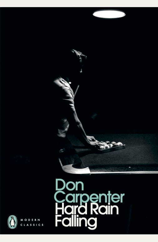 I was in a Berlin bookshop recently and noticed a brand spanking new Penguin Modern Classics edition of Don Carpenter’s 1966 novel Hard Rain Falling. I don’t know who is overseeing the cover design on some of the Penguin Modern Classics releases, but they need a raise, because they’re work is stunning, including on the new edition of Carpenter’s book.