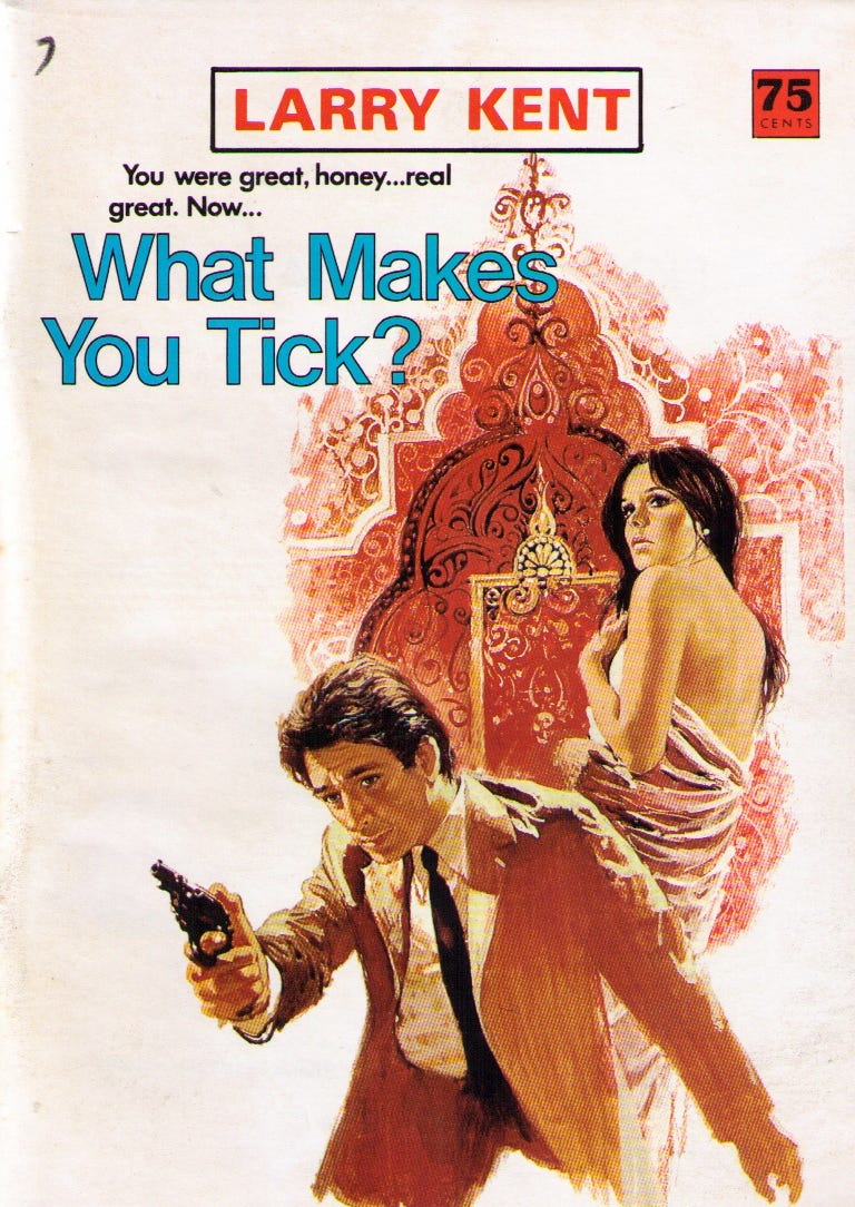 The cover style of the Larry Kent series radically changed in the late 1960s, becoming far more hard-boiled and increasingly sexual and violent, in a way that had absolutely no relation to the content of the books themselves, which remained quite tame.