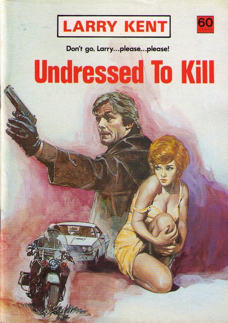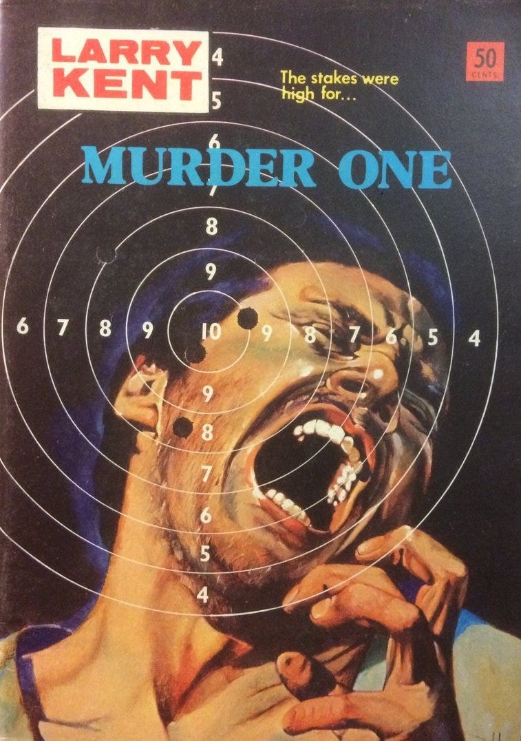 Among my collection is a large number of Larry Kent crime novels, increasingly hard to find in the wild nowadays. Most of these were purchased as a single lot on a random visit to a second-hand bookshop in the New South Wales coastal town of Ballina (better known as the home of the Big Prawn statue) during a beach holiday many years ago.